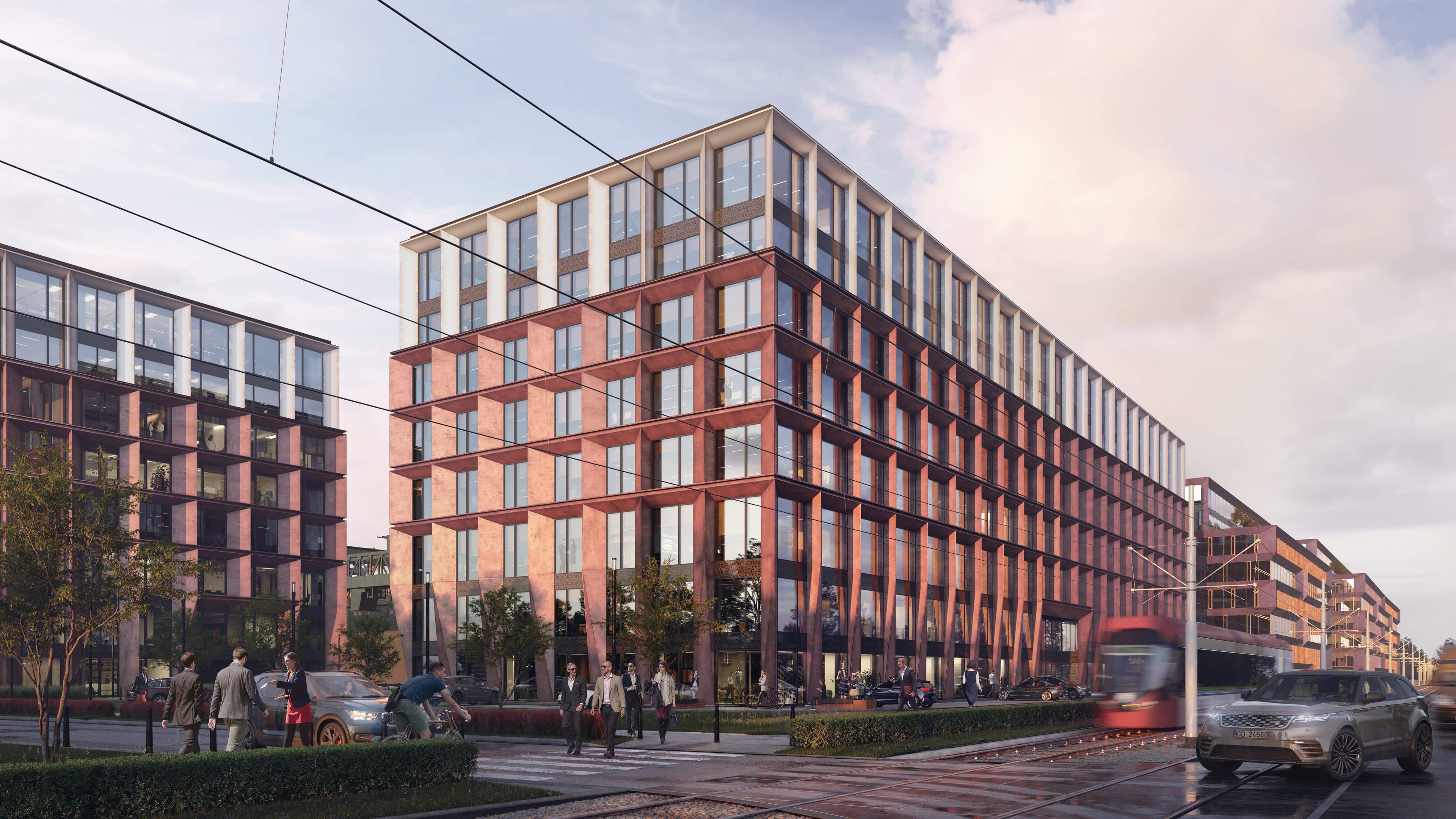 W budynku dostępne są różne powierzchnie biurowe – od 103 m² do 2 257 m², z czynszem od 14,95 EUR/m² oraz opłatą eksploatacyjną 16,90 PLN/m². Można wynająć miejsce parkingowe w garażu podziemnym lub na parkingu naziemnym, a także skorzystać z publicznych miejsc postojowych lub prywatnych parkingów w okolicy.