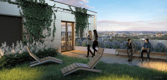 W samym kompleksie można korzystać z lunch baru, kawiarni, strefy relaksu na dziedzińcu, zielonego tarasu na dachu czy infrastruktury dla rowerzystów. W okolicy znajduje się Bonarka City Center oraz Sanktuarium w Łagiewnikach, a szybki dojazd do Starego Miasta pozwala w pełni korzystać z oferty kulturalnej i gastronomicznej Krakowa.