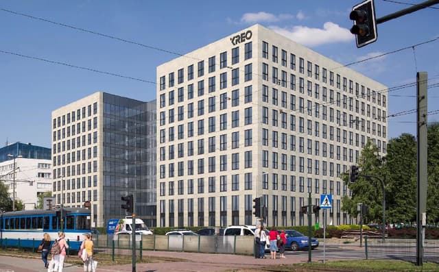 Kreo to biurowiec klasy A położony na ul. Wadowickiej 12 w krakowskim Podgórzu – miejscu, które przyciąga energicznych ludzi i firmy szukające inspirującej przestrzeni do pracy. Budynek oferuje ponad 24 000 m² powierzchni biurowej, a typowe piętra mają ok. 2 700 m², co pozwala na elastyczne aranżacje i dopasowanie do potrzeb zespołu. Wysokość biur to 2,75 m, a podniesione podłogi, podwieszane sufity, okablowanie strukturalne i 4-rurowy system klimatyzacji zapewniają komfort codziennej pracy.