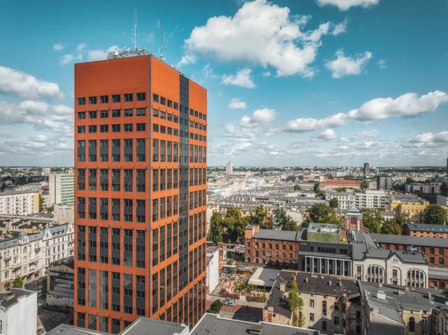 Red Tower to biurowiec zlokalizowany w samym centrum Łodzi, przy ul. Piotrkowskiej 148/150, w Śródmieściu. Budynek wyróżnia się rozpoznawalnym adresem i 20 piętrami, na których dostępne są elastyczne powierzchnie biurowe do wynajęcia. W ofercie znajdują się moduły o powierzchni od 114 m² do 650 m², a czynsz wynosi 9,50 EUR/m², co przy obecnym kursie daje atrakcyjną stawkę. Dodatkowo opłata eksploatacyjna to 20,00 PLN/m². Jeśli szukasz biura w sercu miasta, Red Tower może być idealnym wyborem.