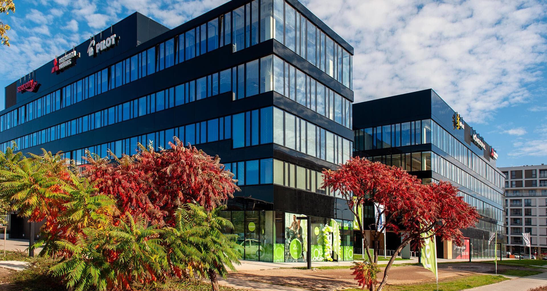 Dla najemców i ich gości dostępnych jest ponad 300 miejsc parkingowych w garażu podziemnym, a także miejsca naziemne, parking publiczny przy ulicy oraz opcja wynajmu miejsc w sąsiednich budynkach. Dojazd do biurowca jest wygodny dzięki licznym liniom autobusowym (401, 402, 317, 504, 189), tramwajowym (17, 18, 31) oraz kolejowym (RL, S2, S3, S4, S40, R8, R80).
