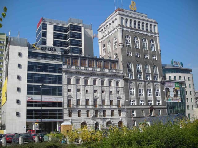 W samym budynku działa centrum konferencyjne, restauracja i bank. W okolicy znajdziesz liczne instytucje finansowe, urzędy oraz sklepy. Do Złotych Tarasów dojdziesz w kilka minut, a spacer do Ogrodu Saskiego to świetny sposób na przerwę w pracy. Dojazd na Lotnisko Chopina zajmuje ok. 20 minut samochodem.