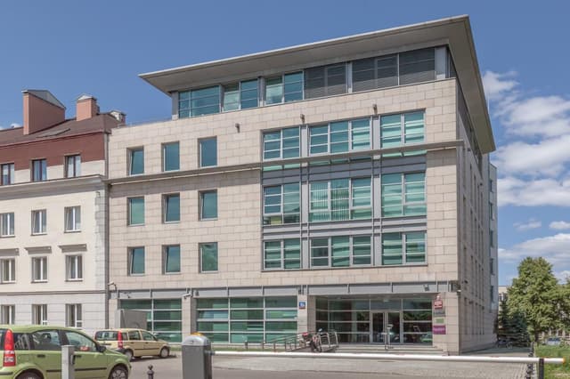 Najemcy mają do dyspozycji miejsca parkingowe podziemne i naziemne w budynku, a także publiczne miejsca postojowe na ulicy oraz prywatne parkingi w sąsiednich obiektach. Dostępne powierzchnie biurowe to m.in. 200 m², 360 m², 364 m², 366 m² i 714 m², a czynsz wynosi 16,79 EUR/m². Opłata eksploatacyjna to 25,00 PLN/m².