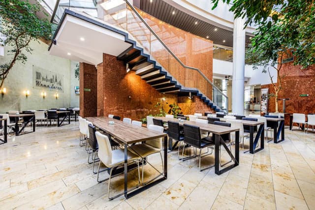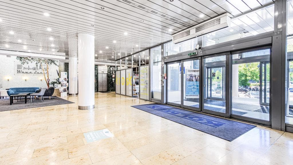 W pobliżu biurowca nie brakuje udogodnień – na szybkie zakupy można wyskoczyć do Żabki, Biedronki lub Lidla, a na lunch wybrać się do restauracji takich jak Pizza Hut, Shoku czy Bombay Masala. Na kawę zapraszają Green Caffè Nero, Starbucks lub Vincent. W okolicy znajdują się także hotele, m.in. Hilton, Ibis oraz Platinum Residence, a dla aktywnych – siłownie Zdrofit i Well Fitness. Dodatkowo, w pobliżu dostępne są stacje rowerów miejskich Veturilo.