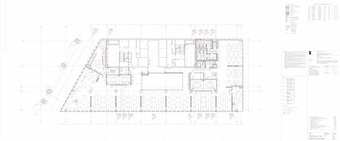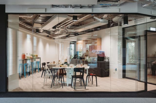 Wynajmowana powierzchnia biurowa to 939 m², zaaranżowana w formie open space, która sprawdzi się nawet dla 100 osób. Wydzielono tu 5 salek konferencyjnych, z czego dwie można połączyć w jedną większą dzięki przesuwnym ścianom. Dodatkowo jest osobne pomieszczenie, które można przeznaczyć na kolejną salkę lub inne potrzeby zespołu. Pracownicy mają do dyspozycji dwie strefy relaksu, pokój do piłkarzyków z wygłuszeniem, dużą kuchnię oraz coffee point, a także toaletę przystosowaną dla osób z niepełnosprawnościami. W biurze znajduje się serwerownia i dodatkowy magazynek o powierzchni 4,8 m².