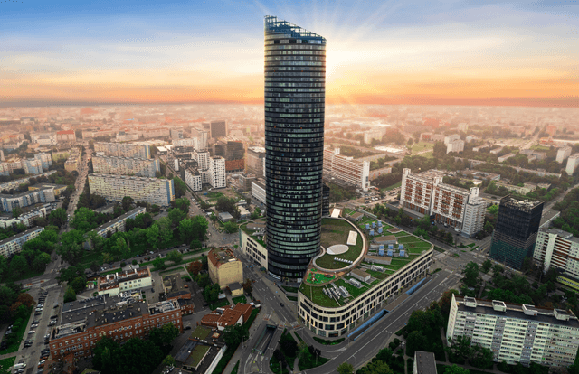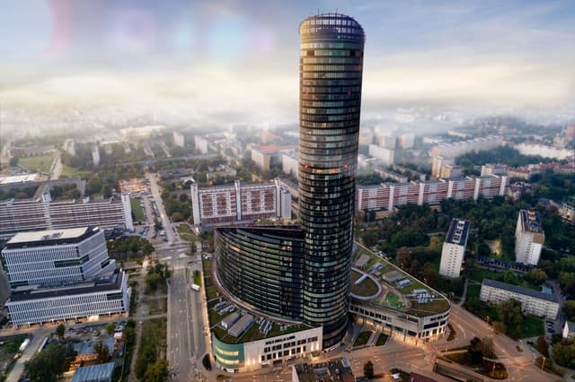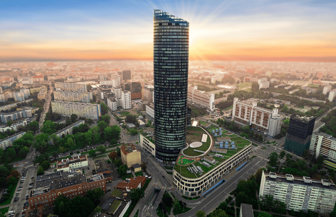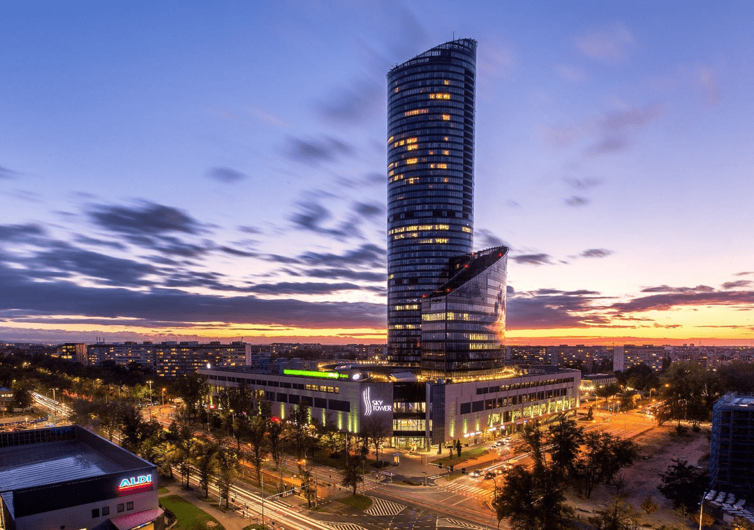Sky Tower przy ul. Powstańców Śląskich 95 to miejsce, które przyciąga firmy szukające elastycznych powierzchni biurowych w sercu Wrocławia. Wysokie przeszklenia zapewniają mnóstwo naturalnego światła, a z okien rozpościera się widok na panoramę miasta. W budynku dostępne są biura o różnych metrażach – od 10 m² do 1 700 m², co pozwala dopasować przestrzeń do potrzeb zarówno mniejszych zespołów, jak i dużych firm. Czynsz za wynajem wynosi 14,00 EUR/m², a opłata eksploatacyjna to 29,00 PLN/m².