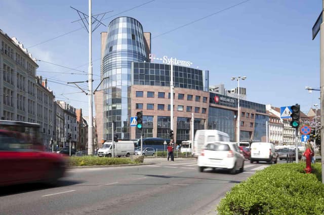 Wratislavia Tower to biurowiec położony w sercu Starego Miasta, na ul. Św. Antoniego 7-11 we Wrocławiu. Lokalizacja w Dzielnicy Czterech Wyznań sprawia, że codzienny dojazd do pracy jest wygodny – w pobliżu kursuje wiele linii tramwajowych (m.in. 3, 6, 7) i autobusowych (np. 144, 132, 106), więc niezależnie od tego, z której części miasta dojeżdżasz, dotrzesz tu bez problemu. Dla zmotoryzowanych dostępny jest podziemny parking, a dodatkowo można korzystać z publicznych miejsc postojowych na ulicy lub prywatnych parkingów w okolicy.