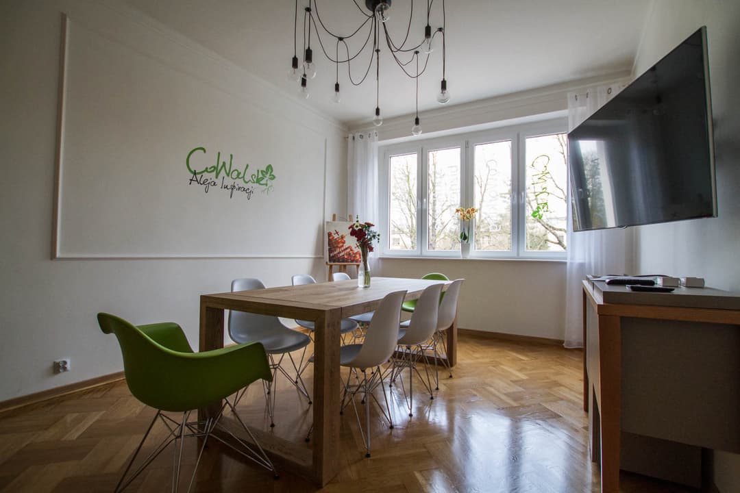 Cowalski Aleja Inspiracji to biuro serwisowane położone w sercu Poznania, na al. Wielkopolskiej 29, w urokliwej dzielnicy Sołacz. Przestrzeń mieści się w zabytkowej kamienicy, a jej dwupoziomowy układ zapewnia komfortowe warunki do pracy zarówno dla zespołów, jak i osób indywidualnych. Do dyspozycji użytkowników jest 21 biurek, sala spotkań mieszcząca do 15 osób oraz kameralny gabinet dla 3 osób. Lokalizacja na Sołaczu gwarantuje szybki dojazd tramwajami linii 3, 7, 9, 10, 11 i 19 oraz autobusami 160, 218 i 234, co ułatwia codzienne przemieszczanie się po mieście.