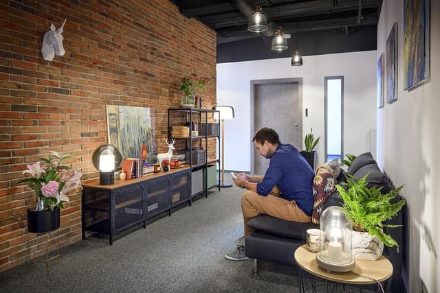 New Work Kaleńska to biuro serwisowane zlokalizowane na ul. Kaleńskiej 5 na Pradze-Południe w Warszawie. To miejsce, gdzie historyczna architektura Grochowa spotyka się z funkcjonalnością współczesnych przestrzeni biurowych. Wnętrza biura są jasne, a charakterystyczna czerwona cegła nawiązuje do sąsiedniego, zabytkowego budynku. W środku znajdują się zarówno prywatne gabinety, jak i przytulne części wspólne oraz sale konferencyjne, które sprawdzą się podczas spotkań w mniejszym lub większym gronie. Dodatkowo, dostępna jest specjalna przestrzeń do nagrywania podcastów i video, co docenią firmy z branży kreatywnej.