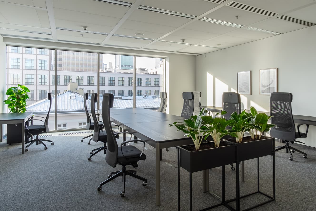 Biura dostępne są w różnych konfiguracjach – od 2 do 20 stanowisk, a ceny zaczynają się już od 950,00 PLN za stanowisko miesięcznie. Wszystkie przestrzenie są umeblowane i gotowe do pracy – wystarczy przyjść i zacząć działać, a obsługa zadba o resztę.