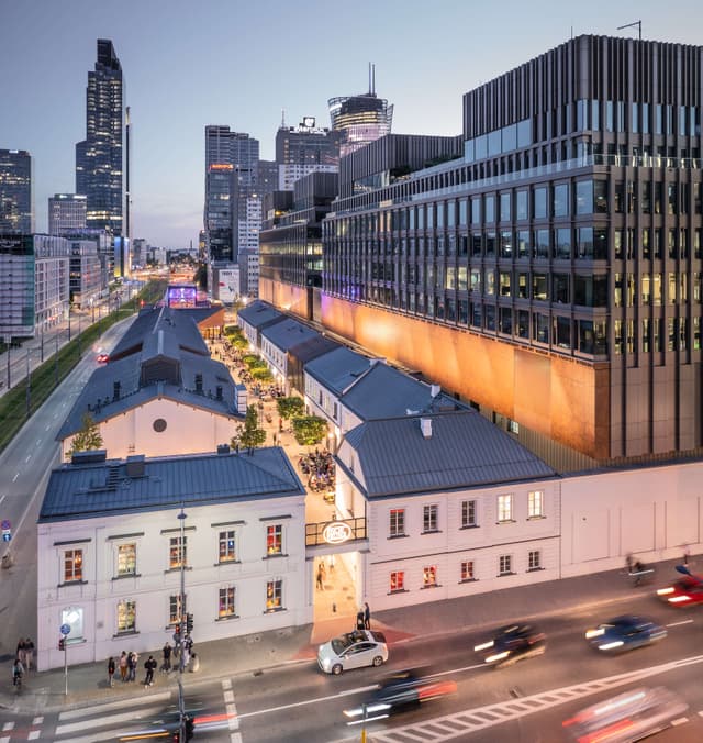 W okolicy nie brakuje udogodnień – na szybkie zakupy można wstąpić do Żabki, Biedronki lub Carrefour Express, a na lunch wybrać się do restauracji takich jak Street, Maharaja czy Munja. Na kawę zapraszają Java Coffee Roasters, Green Caffè Nero lub Etno Cafe. Po pracy można zrelaksować się w barze Arena, Browar Warszawski lub Wiśniewski. Dla osób aktywnych dostępne są siłownie Well Fitness, Zdrofit oraz Stołeczne Centrum Sportu Aktywna Warszawa. W okolicy znajdują się także hotele, m.in. Hilton, Holiday Inn i Westin, a dla miłośników rowerów miejskich – stacje Veturilo.