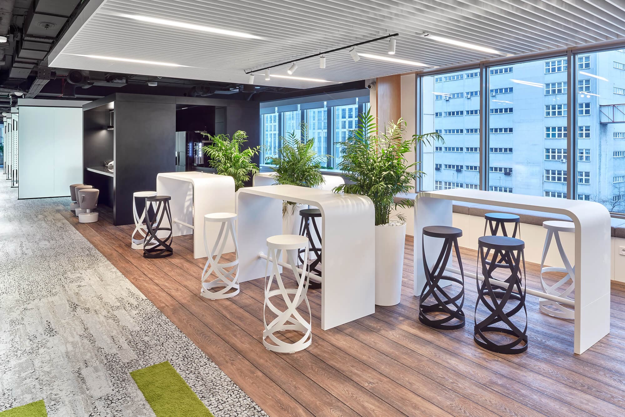 BOBO Coworking na ul. Prostej 70 na Woli w Warszawie to miejsce, które przyciąga przedsiębiorców, freelancerów i zespoły szukające elastycznej przestrzeni do pracy. Biuro serwisowane jest dostępne przez całą dobę, 7 dni w tygodniu, co pozwala dopasować godziny pracy do własnych potrzeb. W okolicy nie brakuje udogodnień – na szybkie zakupy można wyskoczyć do Żabki, Biedronki lub Lewiatana, a na lunch wybrać się do restauracji takich jak Pizza Hut, Bydło i Powidło czy Thai Wok. Na kawę zapraszają Green Caffè Nero, Starbucks lub Vincent, a po pracy można zrelaksować się w barze Billboard, Krutoy Lounge lub Pan Bóbr. Dla aktywnych dostępne są siłownie Zdrofit, In Time i Fitology. W pobliżu znajdują się także hotele Holiday Inn Express, Crowne Plaza i A&O, co ułatwia organizację spotkań biznesowych z gośćmi spoza miasta.